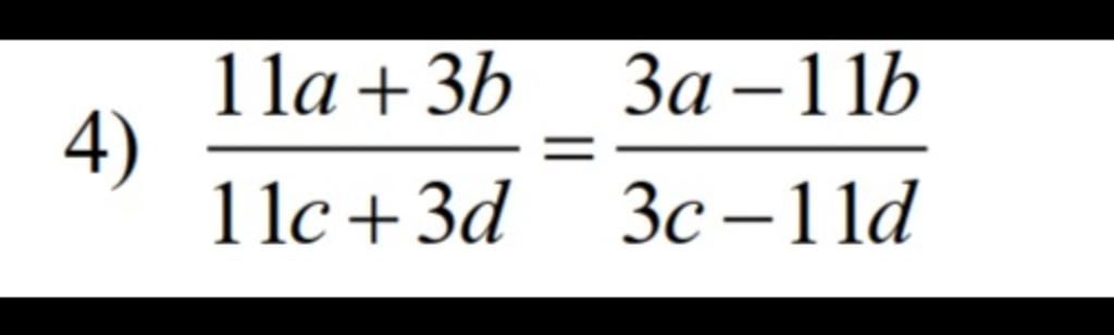 `\text{nên` `(11a + 3b) / (11c + 3d) = (3a - 11b) / (3c - 11d)`