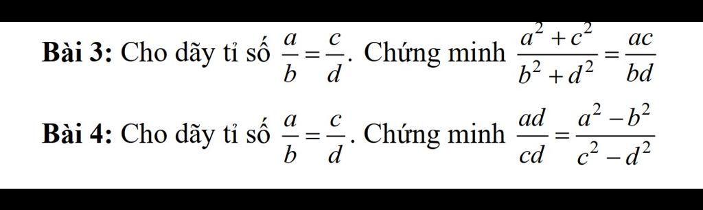Từ `(1)` và `(2)` suy ra: `(a^2+c^2)/(b^2+d^2) = (ac)/(bd)`