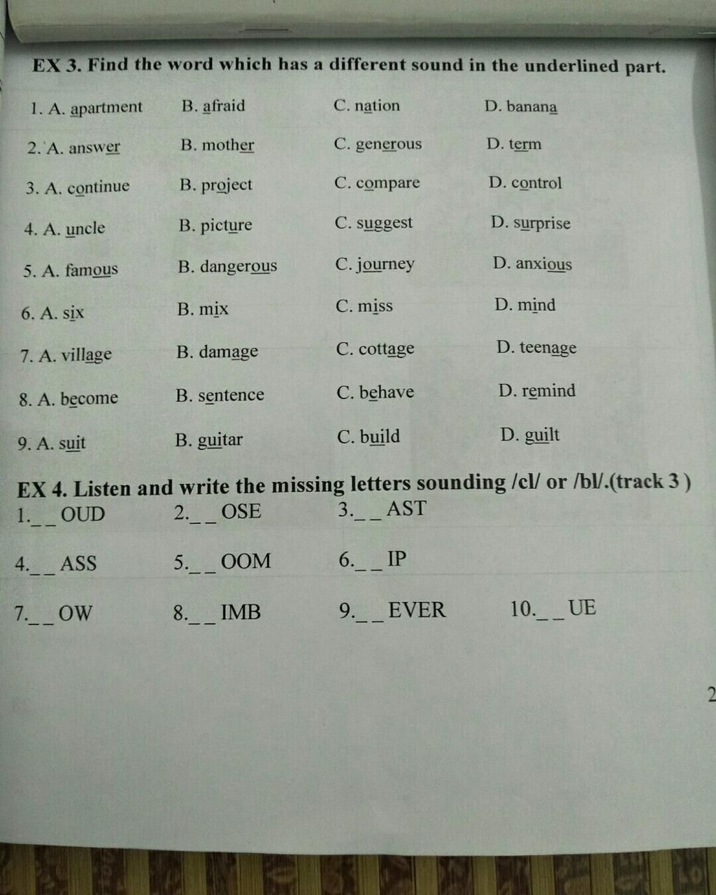 `3`. `B` /ɒ/ các từ còn lại /ə/