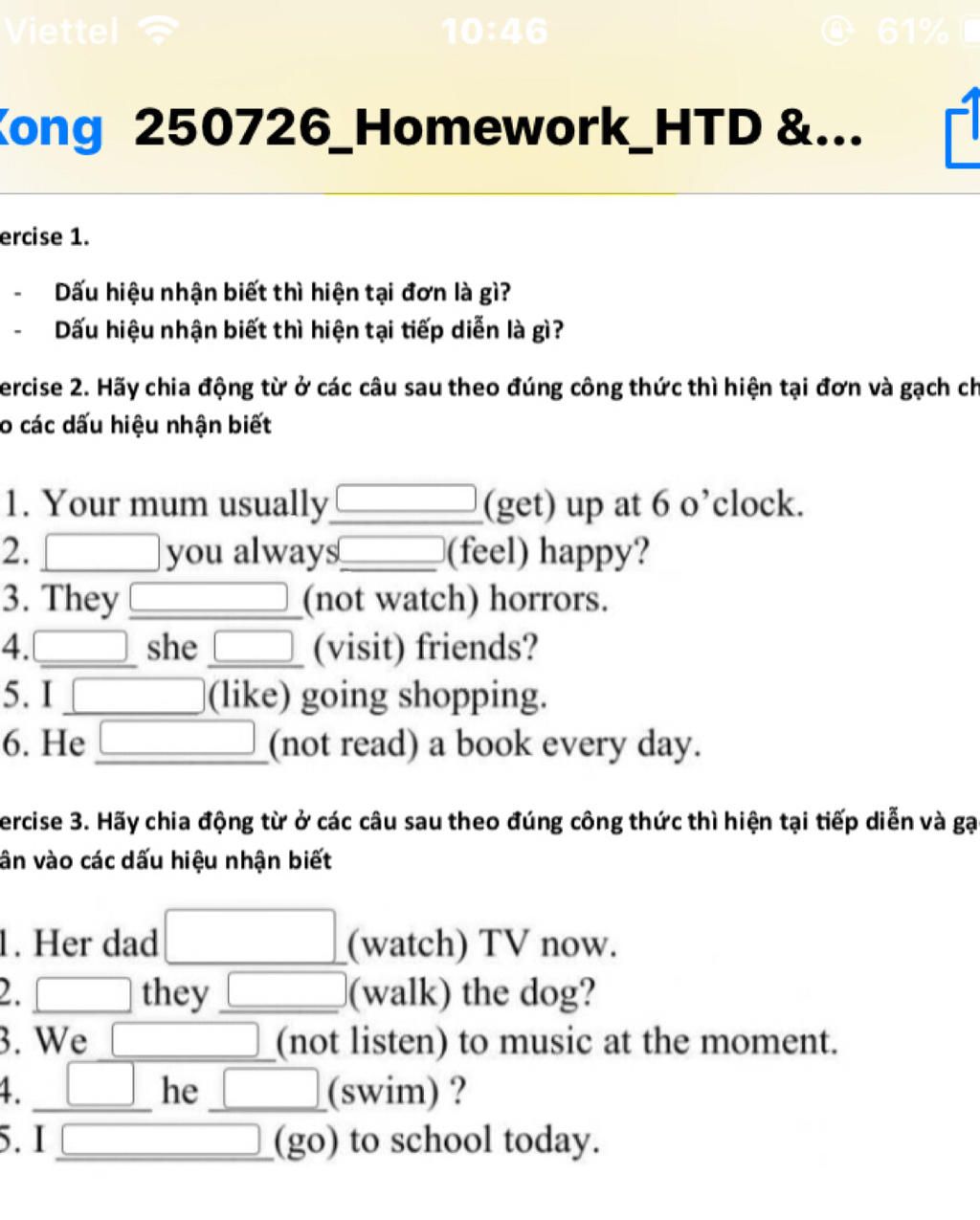 `-` DHNB thì HTĐ : always, usually, often, sometime, every day/week/month/..., once/twice a week, ...