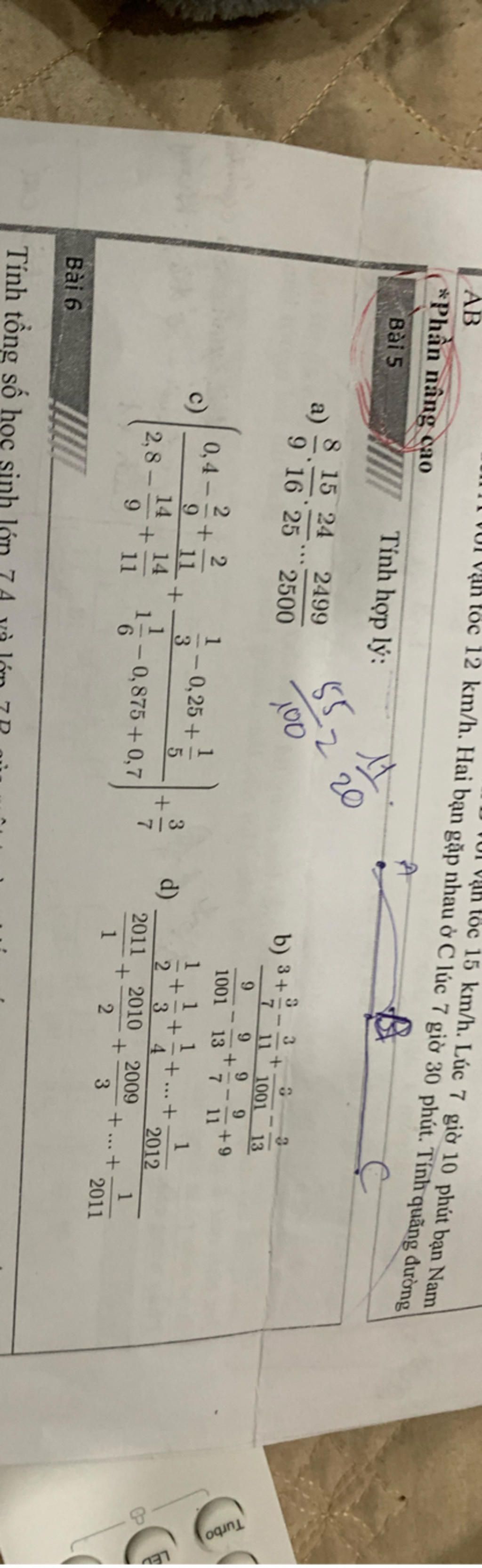 loc 12 km/h. Hai bạn gặp nhau ở C lúc 7 giờ 30 phút. Tính quãng đường