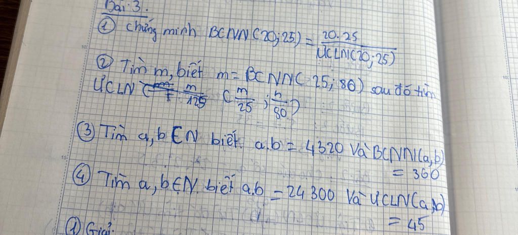 (3) Tìm a,b En biết ab4320 và BCNN(a,b)