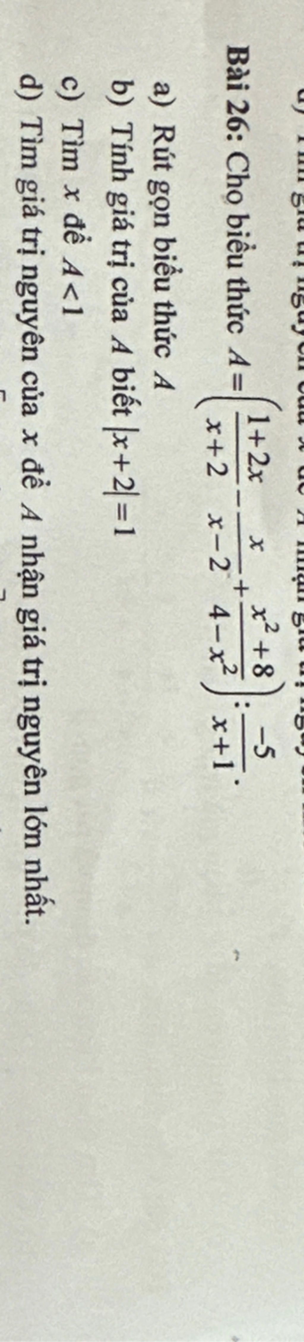 d) Tìm giá trị nguyên của x để A nhận giá trị nguyên lớn nhất.