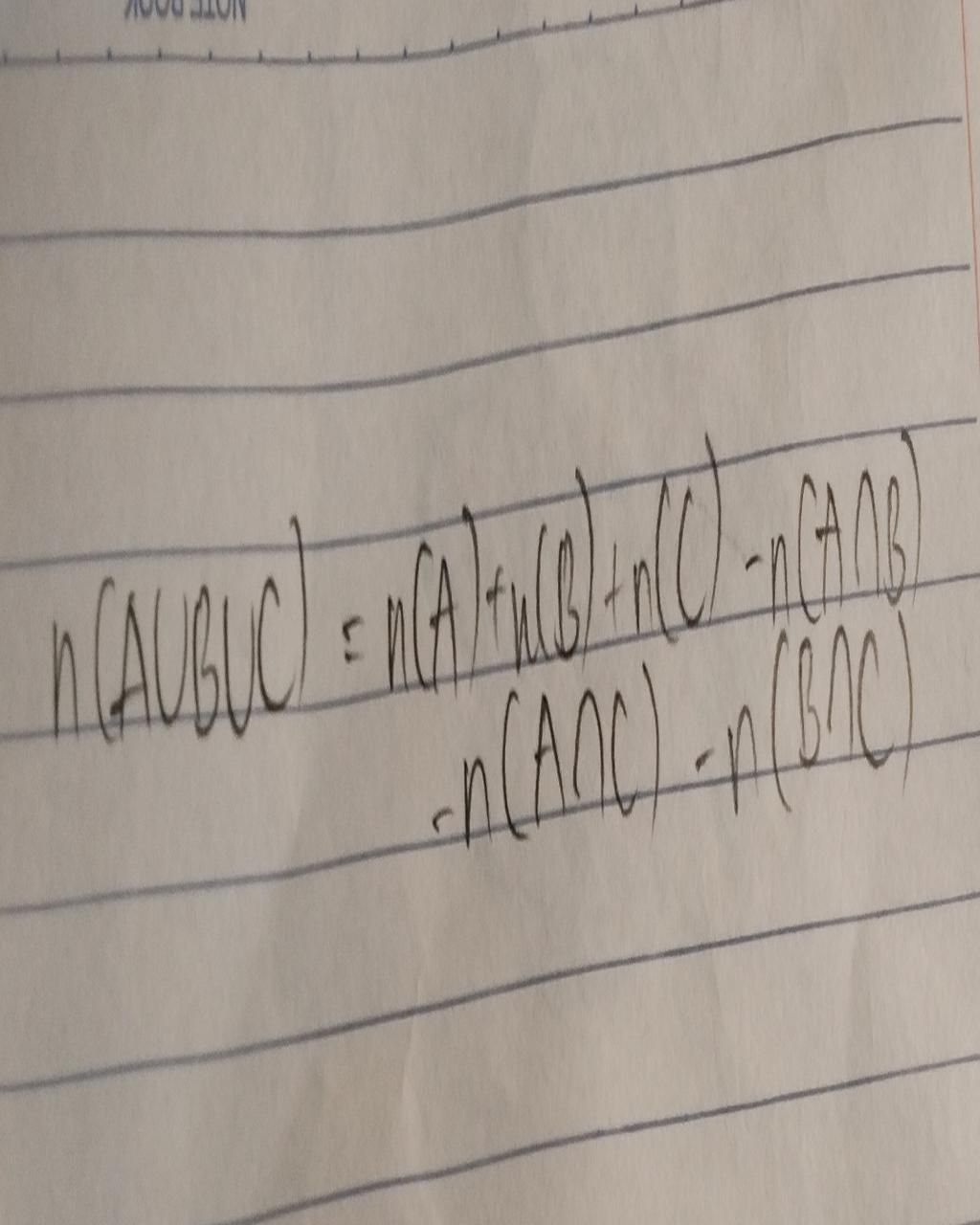 `-> n(A) + n(B) + n(C) - n(A nn B) - n(A nn C) - n(B nn C) = {1 ; 2 ; 4 ; 5}`