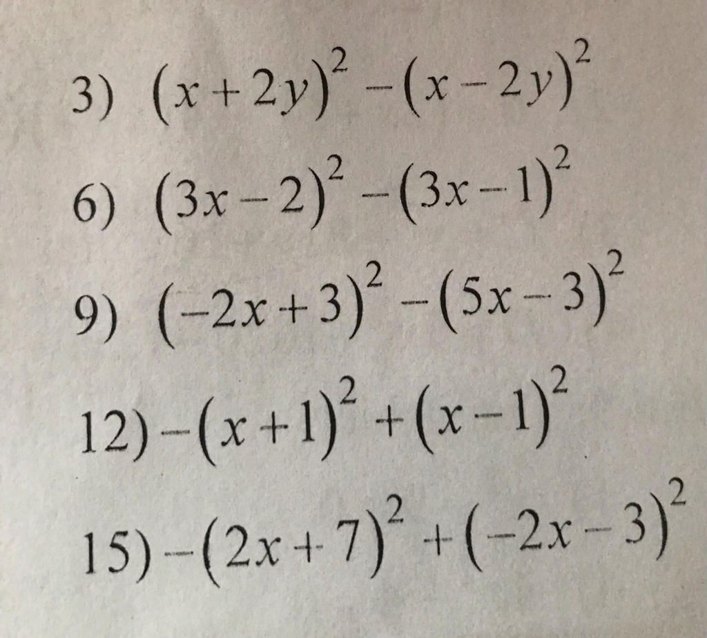 $15)$ `-(2x+7)^2 + (-2x-3)^2`