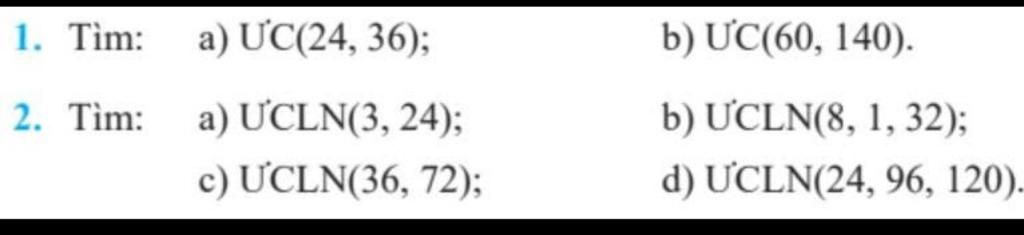 `=> ƯC(60,140) = Ư(20) = {1; 2; 4; 5; 10; 20}`