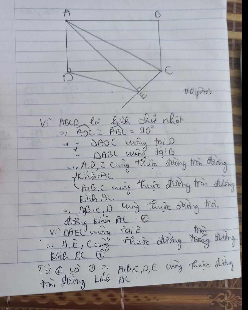 Cho hình chữ nhật ABCD, vẽ tam giác AEC vuông tại E. Chứng minh năm điểm A,B,C,D,E cùng thuộc một đường tròn