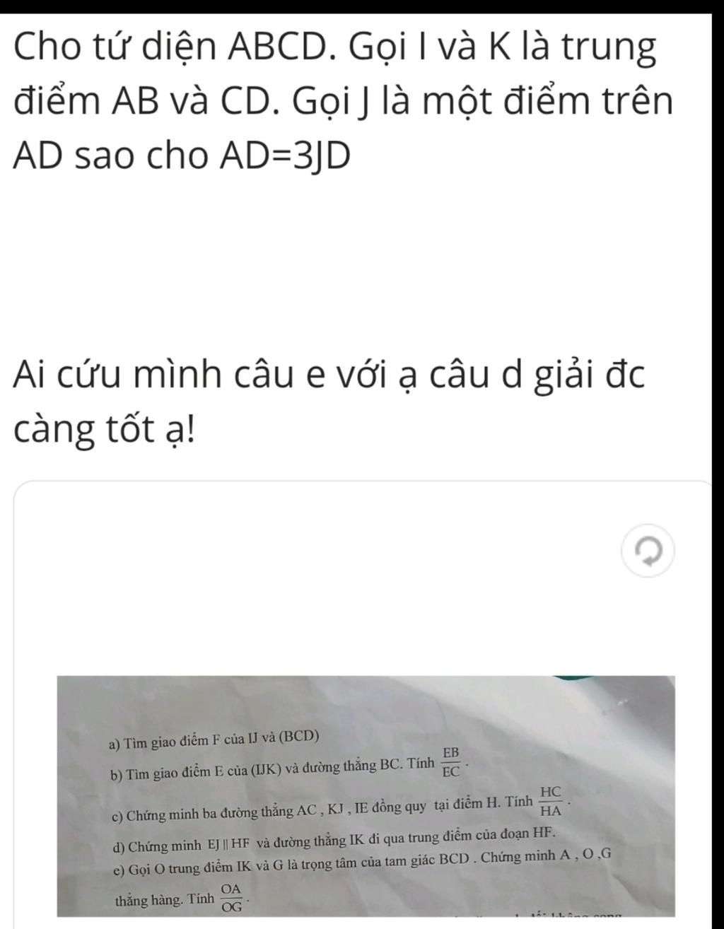 Ai cứu mình câu e với ạ câu d giải đc