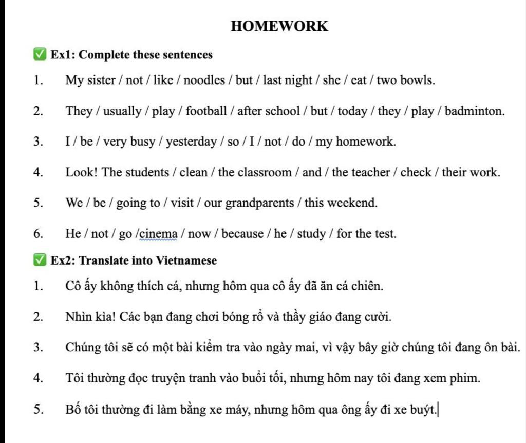 `3.` I was very busy yesterday, so I didn’t do my homework