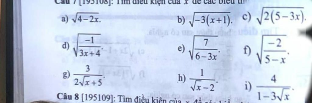`h)+)` Để `\frac{1}{\sqrt{x}-2}` có nghĩa thì: