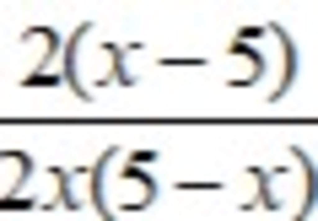 `= ( 2(x-5) )/( 2x . -(x-5) )`