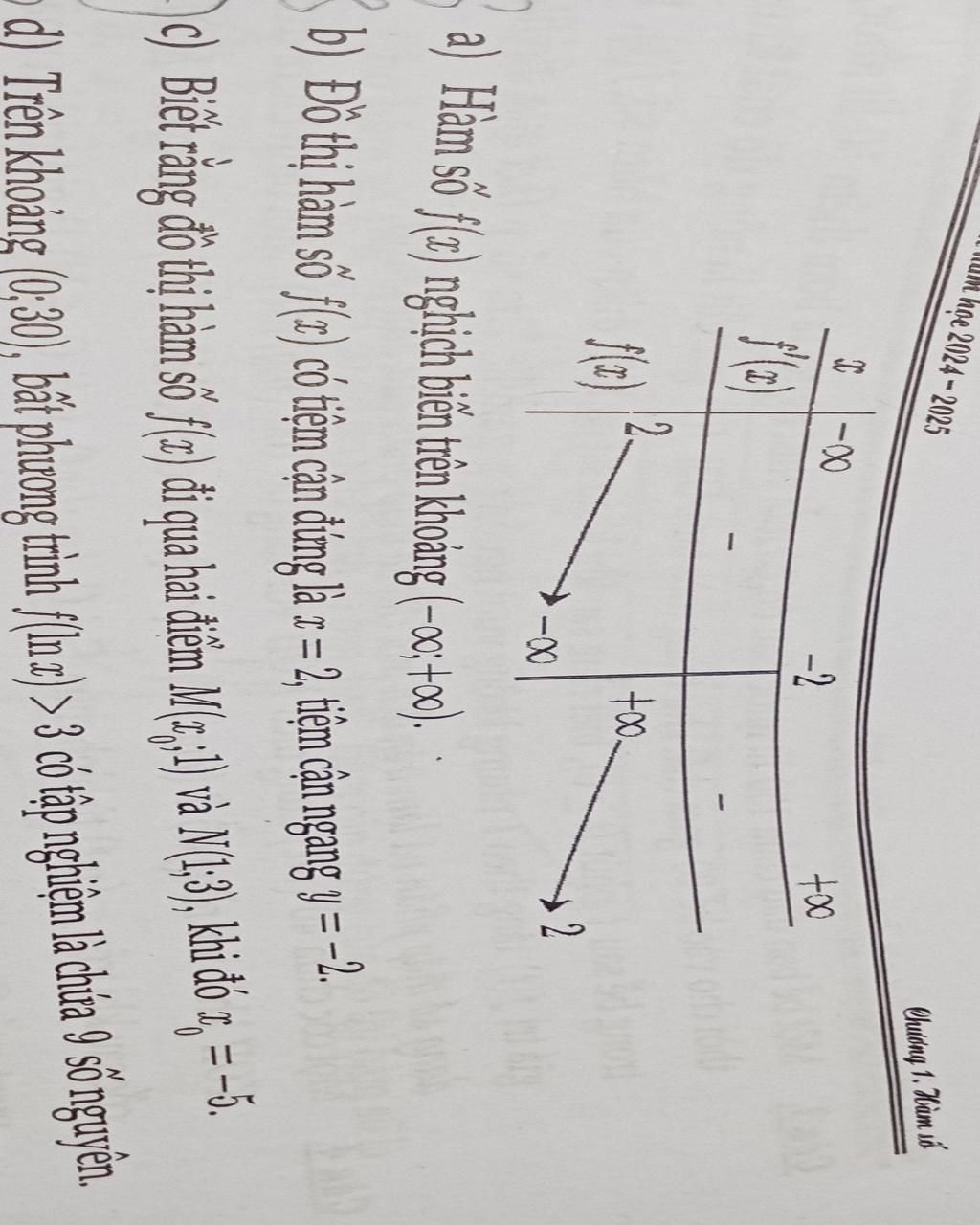 Ta có: Đồ thị hàm số $f(x)$ đi qua $N(1; 3)$
