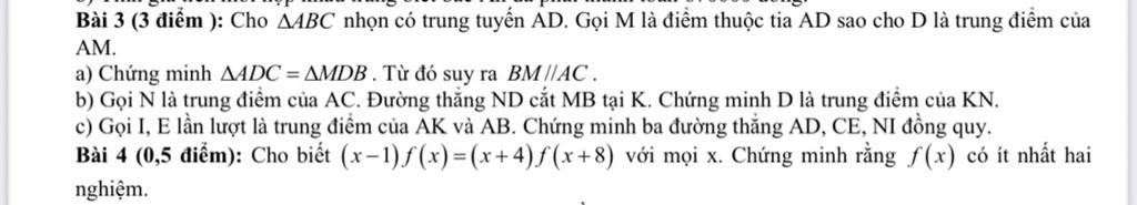 $\to AD, NI, CE$ là trung tuyến $\Delta ABC$
