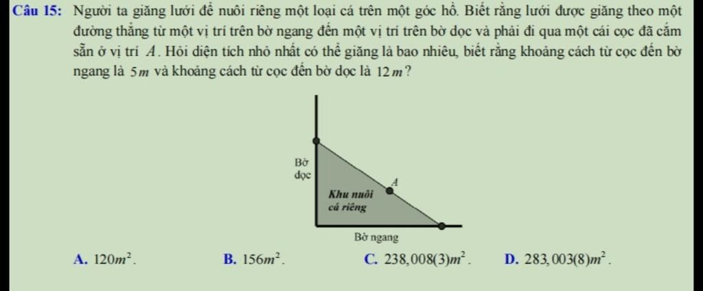 $\to $Diện tích nhỏ nhất có thể giăng là: