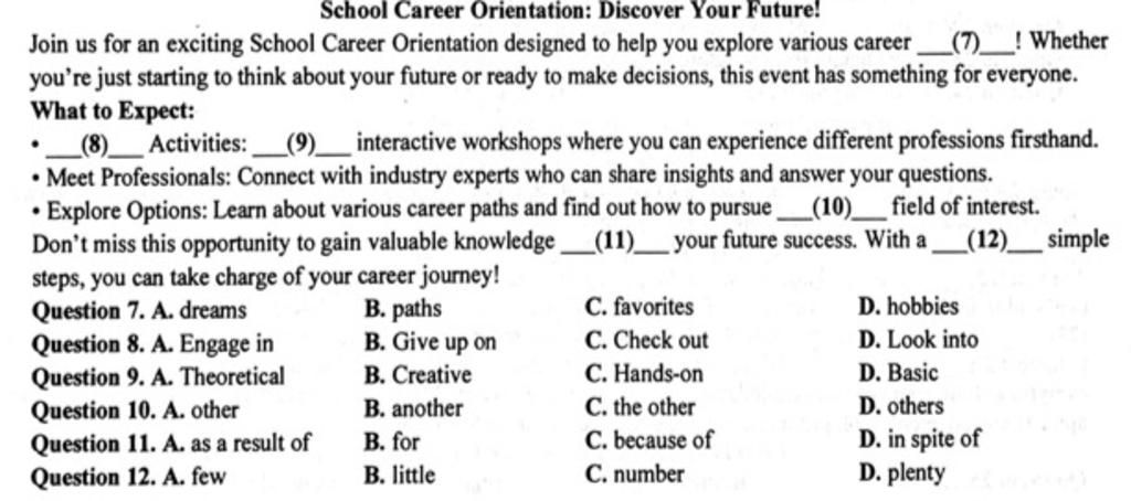 `***` Dịch: Hãy tham gia cùng chúng tôi trong chương trình Định hướng Nghề nghiệp đầy hứng khởi tại trường, được thiết kế để giúp bạn khám phá nhiều con đường nghề nghiệp khác nhau