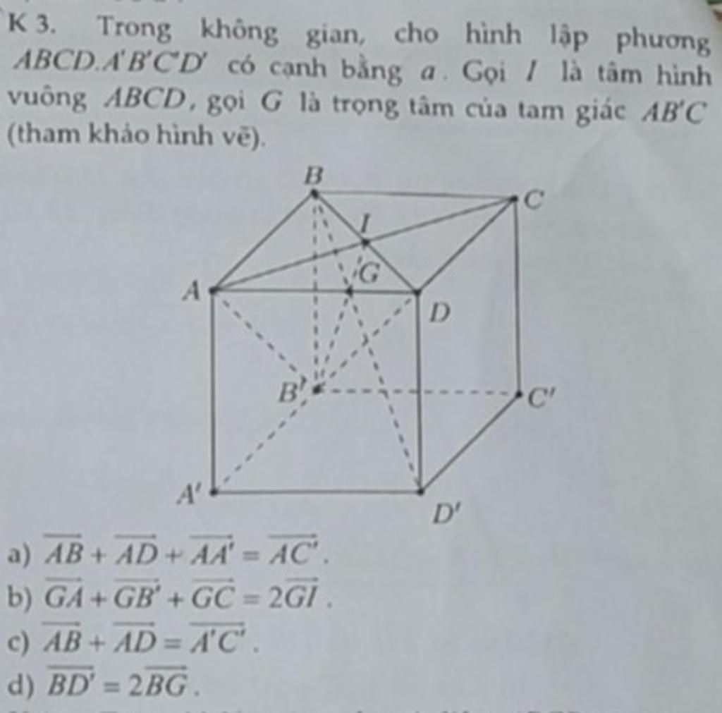 $\Rightarrow \overrightarrow{BA} + \overrightarrow{AA'} + \overrightarrow{A'D'} = 3\overrightarrow{BG}$