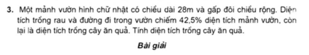 `100% - 42,5%=57,5%` ( diện tích mảnh vườn )
