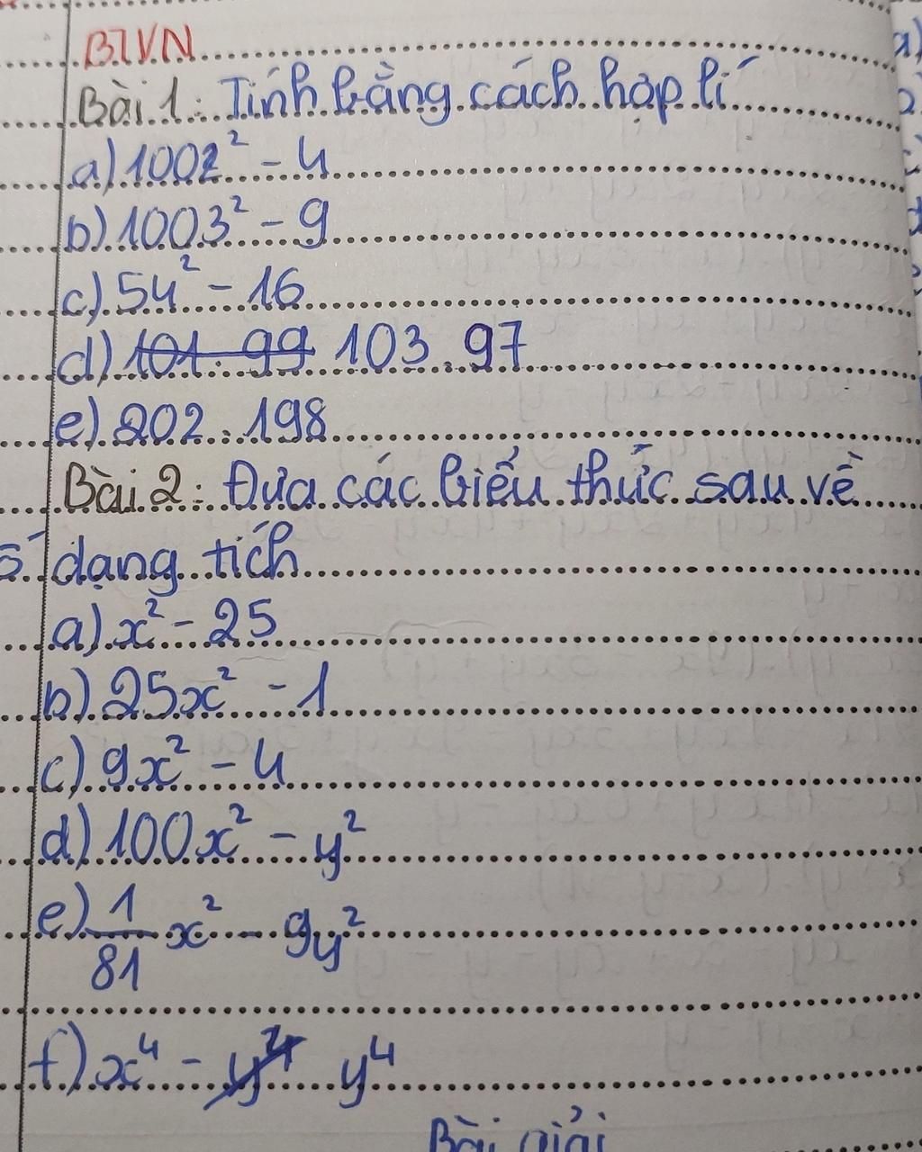 `b) 1003^2 - 9 = 1003^2 - 3^2 = ( 1003 - 3 ) ( 1003 + 3 ) = 1000 . 1006 = 1` `006` `000`