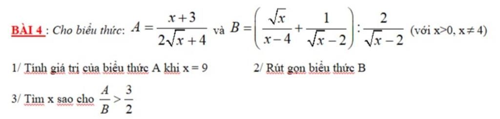 `A/B > 3/2 => ( x + 3 )/( 2\sqrt{x} + 2 ) > 3/2`