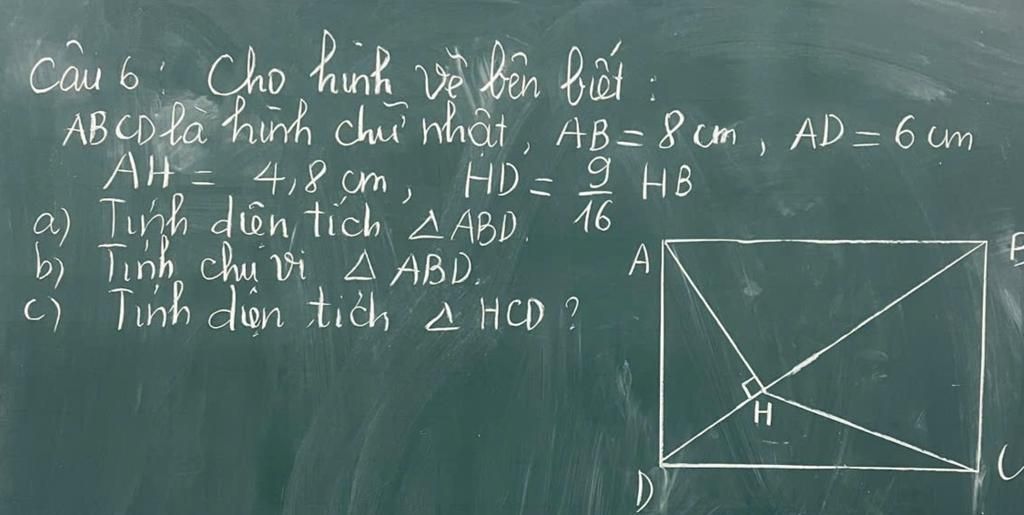 ⇔ $S_{ΔHCD}$ = $\frac{3,6 × 4,8}{2}$ = $\frac{48}{2}$ = 17,28 ($cm^{2}$)