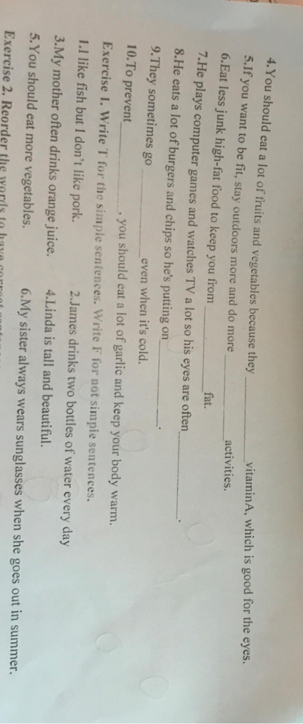 `***` Dịch: Bạn nên ăn nhiều hoa quả và rau bởi vì nó cung cấp nhiều vitamin `A`, cái mà tốt cho mắt