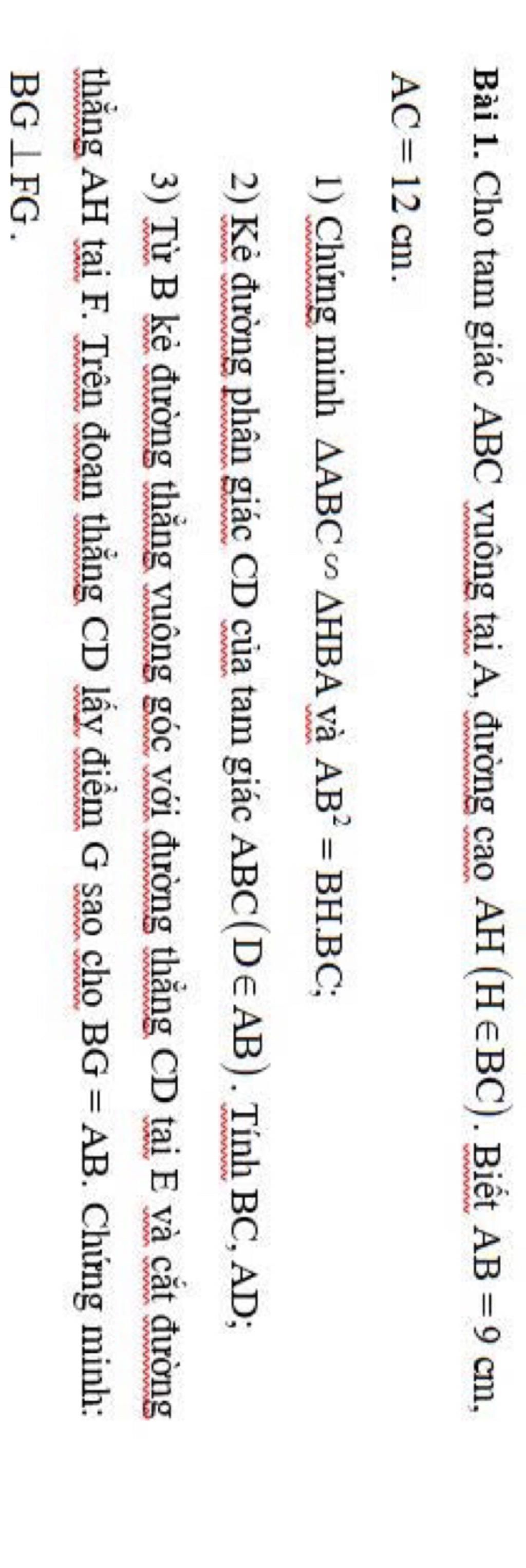 Bài 1. Cho tam giác ABC vuông tại A, đường cao AH (HeBC). Biết AB =9 cm,