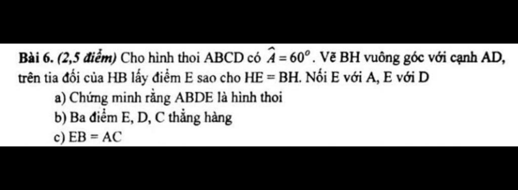 Ta có: $AD\perp BE=H$ là trung điểm $BE$