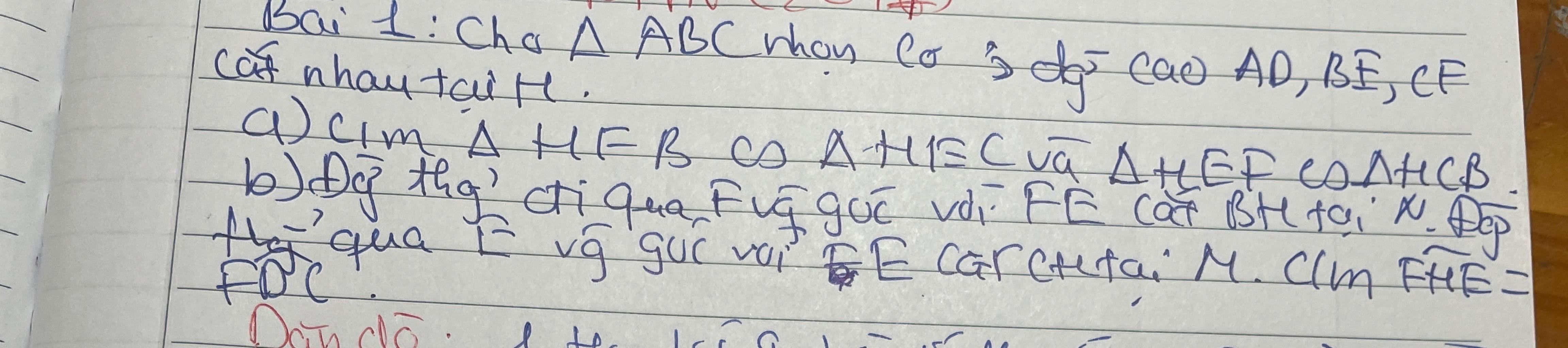 a.Xét $\Delta HBF,\Delta HCE$ có: