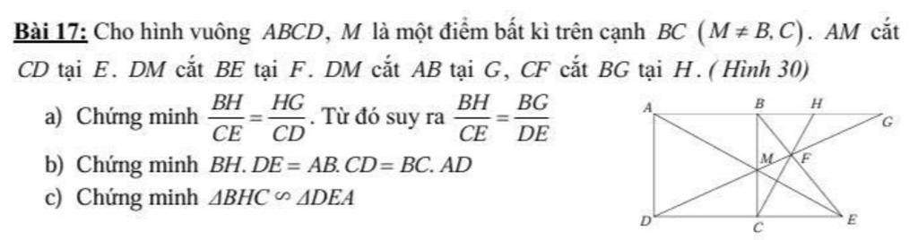 b.Từ a $\to \dfrac{BG}{DE}=\dfrac{BH}{CE}$