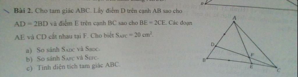 \frac{S_{AFC}}{S_{ABC}} = \frac{2}{9},\quad S_{AFC} = 20