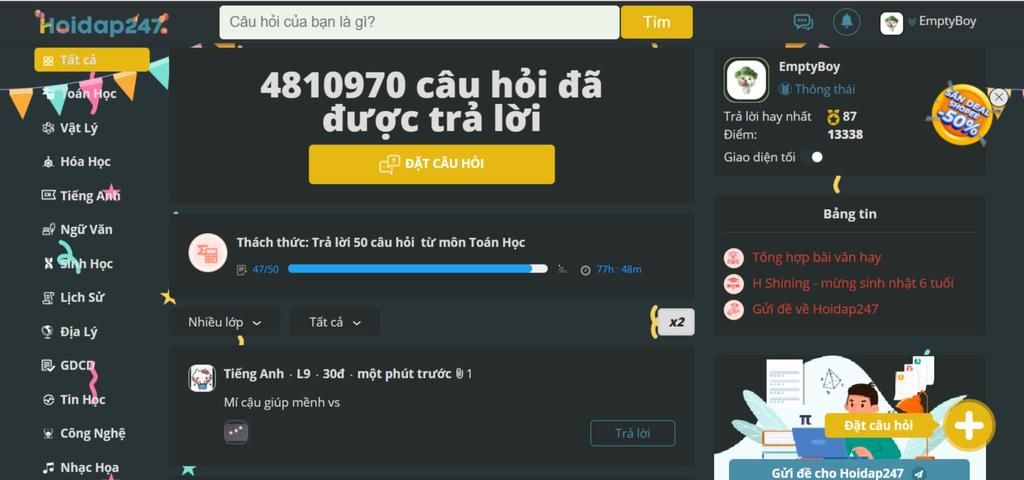 Thách thức: Trả lời 50 câu hỏi từ môn Toán Học