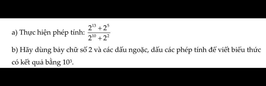 `b)` Với `7` chữ số `2` ta có thể tạo ra được phép tính bằng `10^3`