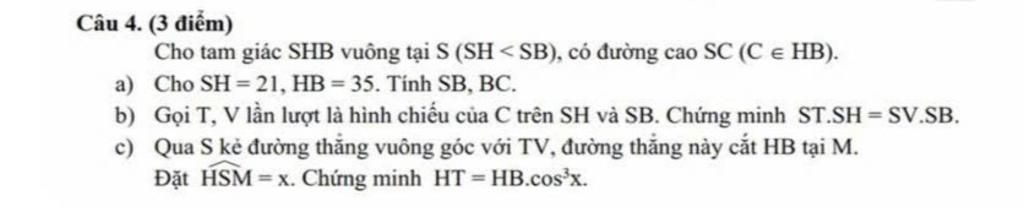 Xét $\triangle SHB$ vuông tại $S$, ta có: