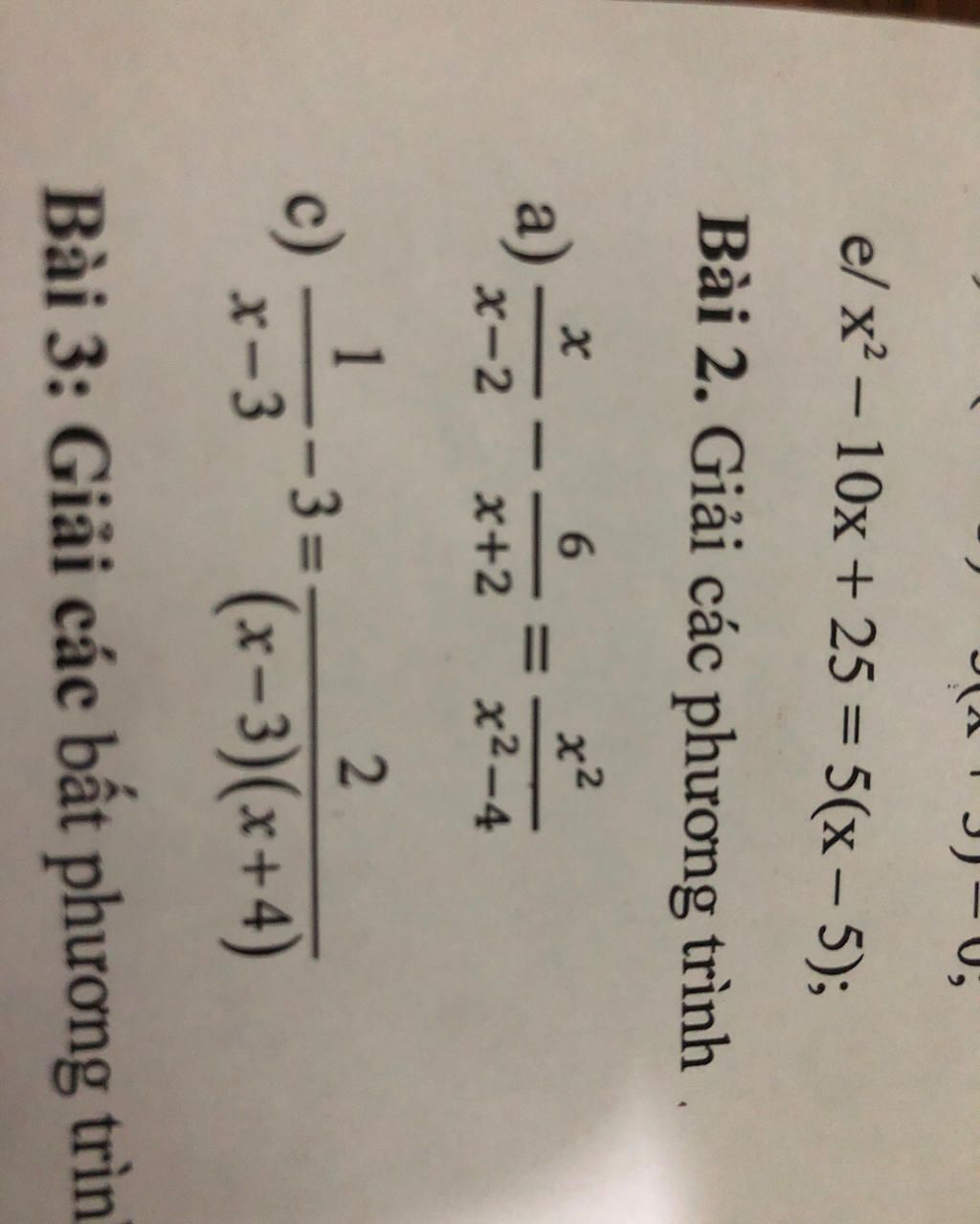 `e)x^2 - 10x + 25 = 5(x - 5)`
