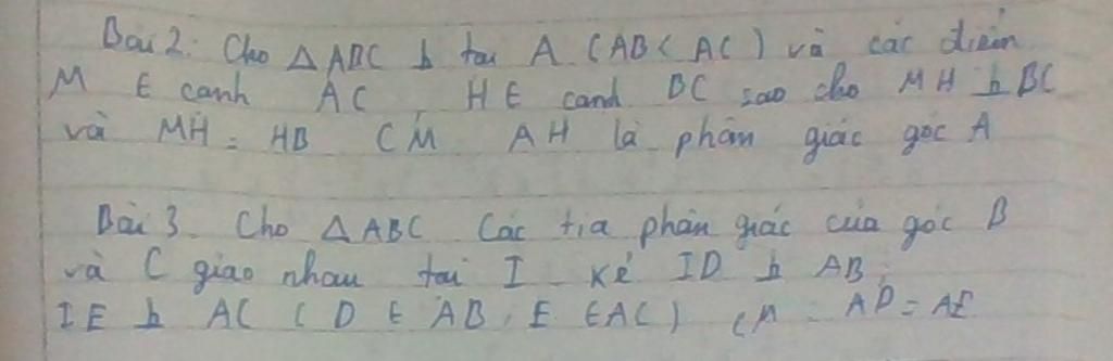 `\hat{BAI}` = `\hat{EAI}` ( `AI` là đg p/g của `ΔABC` )