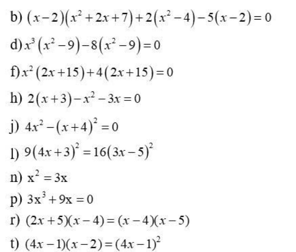 `r)` `(2x + 5)(x - 4) = (x - 4)(x - 5)`