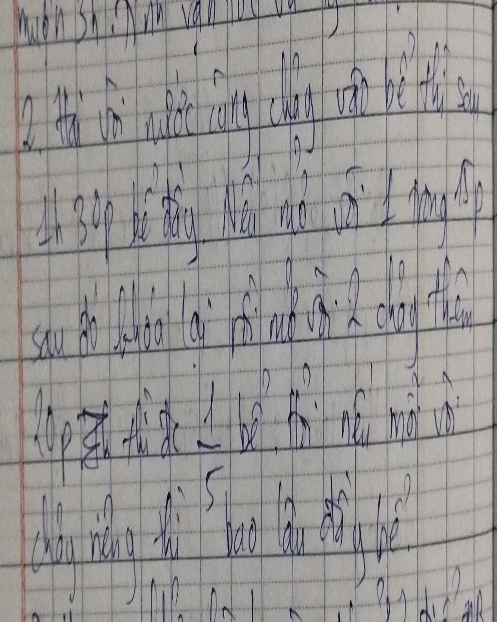 Mỗi giờ hai vòi chảy được lần lượt là `1/c` (bể) và `1/u` (bể)