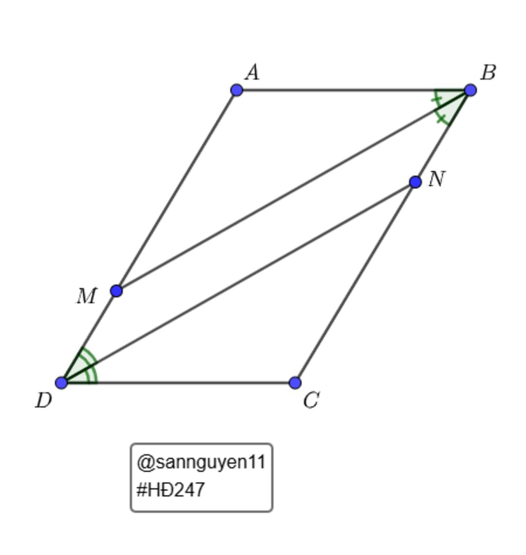 Mà `BM,DN` lần lượt là tia phân giác `hatB;hatD` nên `hat(MBN)=1/2hatB;hat(MDN)=1/2hatD`