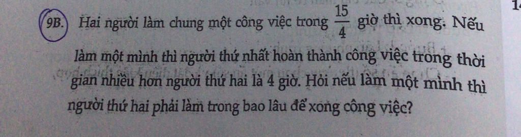 Hai người làm chung trong $\dfrac{15}{4}$ giờ thì xong CV