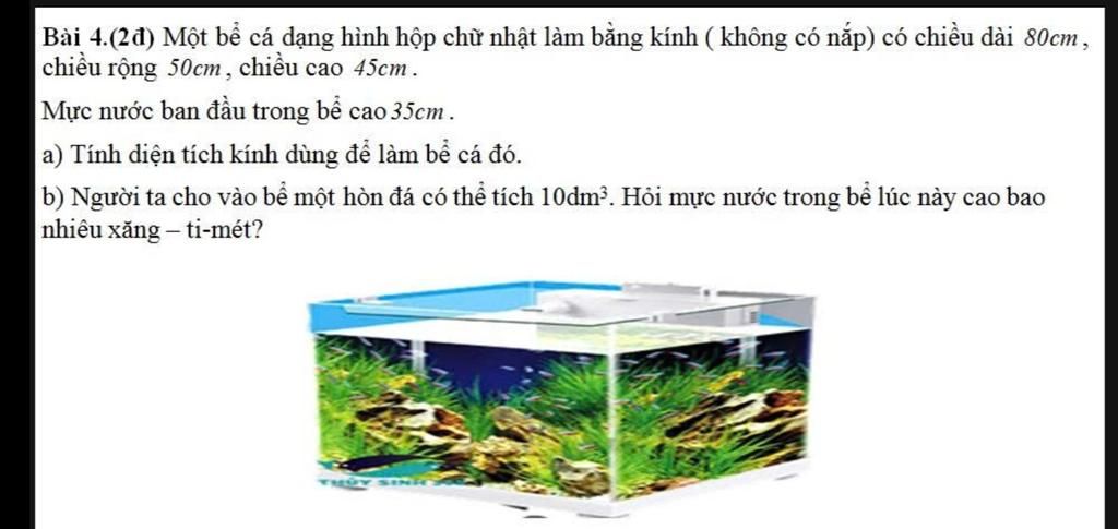 Diện tích kính dùng để làm bể cá đó là: