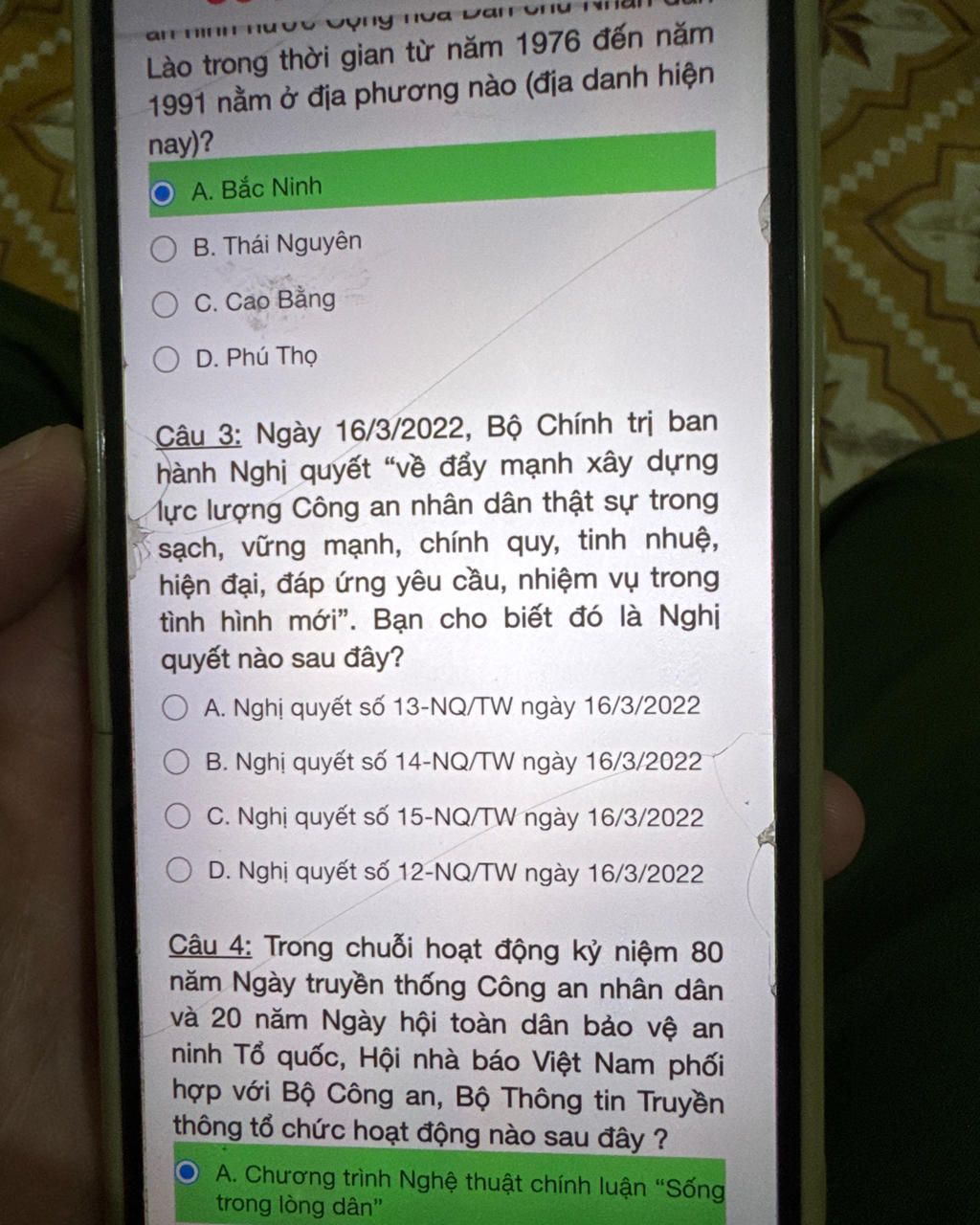 Câu 2 : D ( Ban hành ngày 16/3/2022, nội dung về xây dựng lực lượng Công an nhân dân hiện đại )