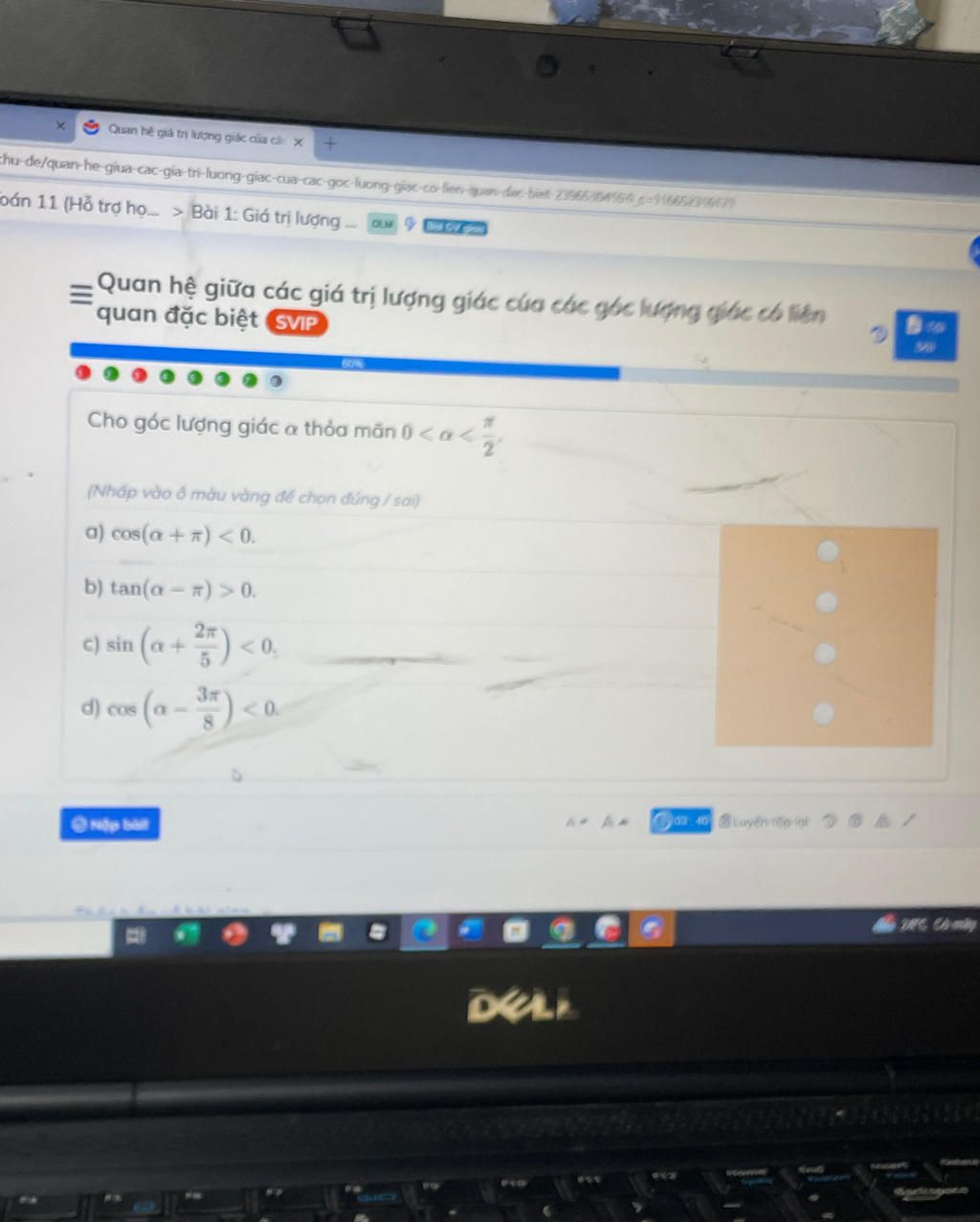 d.Vì $0<\alpha<\dfrac{\pi}2$
