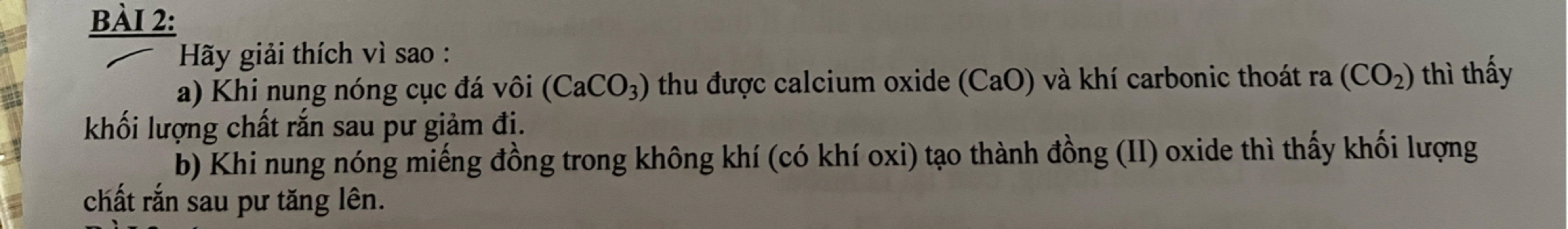 `b)` Khối lượng miếng đồng tăng là vì sau phản ứng đồng đã phản ứng với $\rm O_2$ tạo thành $\rm CuO$ khối lượng tăng lên đó là khối lượng của $\rm [O]$