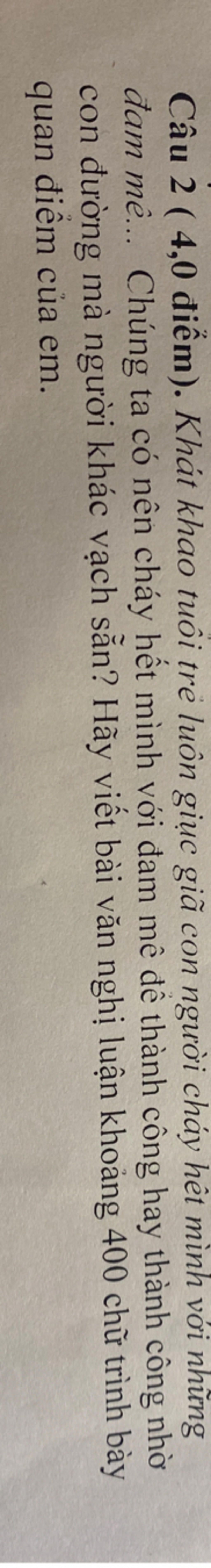 Tuổi trẻ là quãng thời gian đẹp nhất trong cuộc đời mỗi con người, là lúc ta mang trong mình nhiều hoài bão, ước mơ và khát khao được cống hiến. Câu hỏi đặt ra là: “Chúng ta có nên chạy hết mình với đam mê để thành công hay thành công nhờ con đường mà người khác vạch sẵn?” Đây là một vấn đề đáng suy ngẫm trong xã hội hiện đại – nơi mà giới trẻ không ngừng tìm kiếm bản sắc và con đường đi riêng của mình.