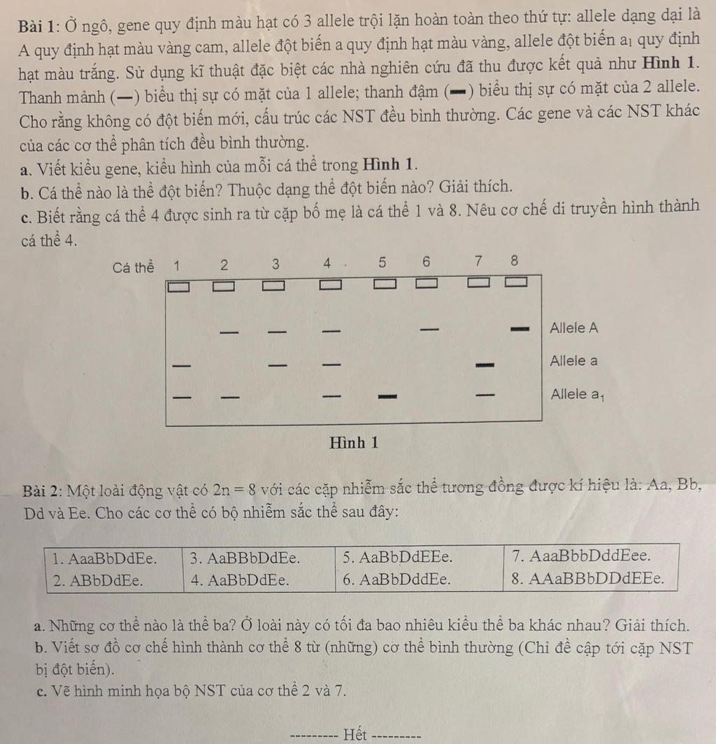 + Kiểu hình: Hạt vàng cam (chỉ có 1 allele A)
