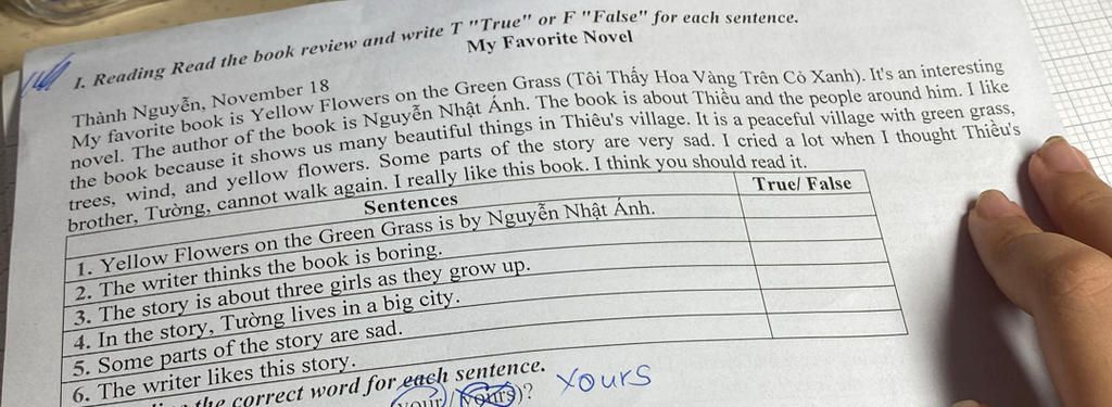`-` D/c: I like the book because it shows us many beautiful things in Thiều's village. It is a peaceful village with green grass, trees, wind and yellow flowers.