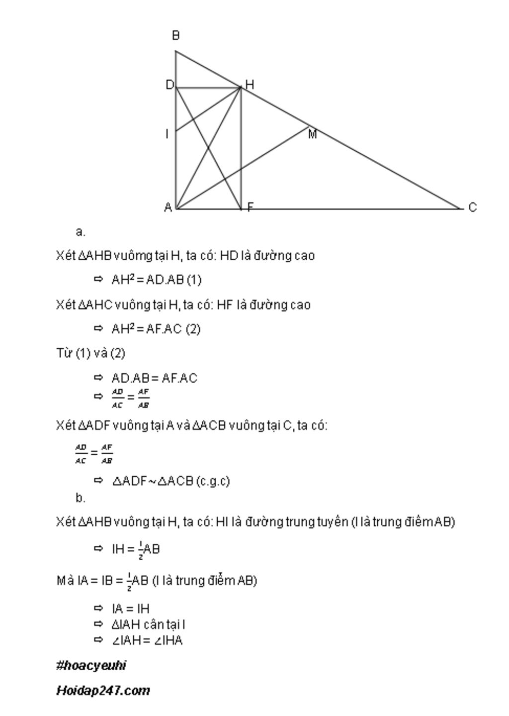Đoạn cuối phải là : Xét ∆IAH và ∆MCA, ta có: ∠IAH = ∠MCA ∠IHA = ∠MAC => △AMC∼△HIA (g.g) (Đánh máy nhầm => )