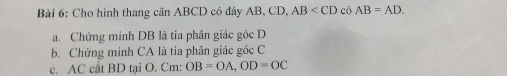 Bài 6: Cho hình thang cân ABCD có đáy AB, CD, AB < CD có AB = AD.