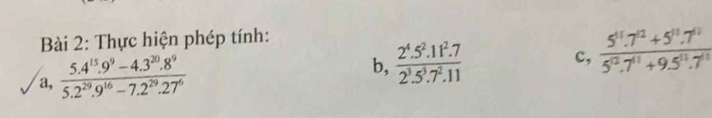 `a) (5 . 4^15 . 9^9 - 4 . 3^20 . 8^9)/(5 . 2^29 . 9^16 - 7 . 2^29 . 27^6)`
