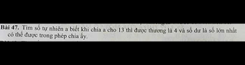 Vì ` a : 13 = 4 ` và số dư lớn nhất là có thể